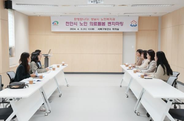 경기 성남시는 3일 천안시를 방문,노인 의료돌봄 통합지원 운영실태를 살펴보고 우수사례 등을 벤치마킹했다.