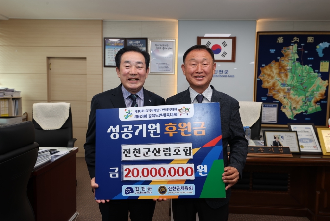 [뉴스서치] 진천군 산림조합은 17일 진천군청을 찾아 오는 5월 9일 열리는 제63회 충북 도민체육대회의 성공을 기원하는 후원금 2천만 원을 전달했다.