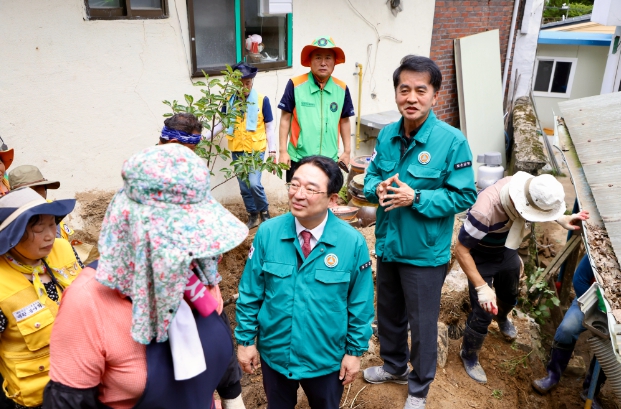 최재형 보은군수도 현장을 방문해 호우 피해 주민들에게 심심한 위로를 전하고 피해복구 지원을 나온 민간 단체 회원과 직원들의 노고를 격려했다.