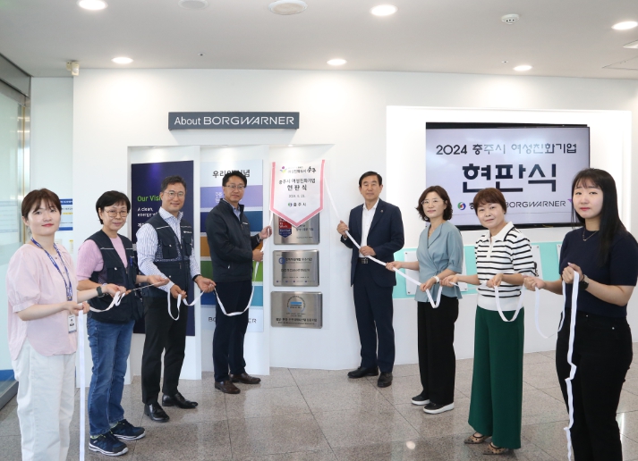 [뉴스서치] 충주시는 23일 보그워너충주(유)를 방문하여 여성친화기업 인증 현판 제막식을 진행했다.