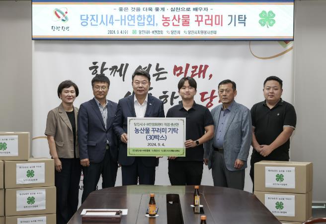 농산물 꾸러미는 당진시4-H연합회원(19~39세 청년농업인)들이 직접 생산한 쌀, 사과, 토마토즙 등으로 구성했으며, 추석 명절을 맞아 지역 취약 계층에게 전달될 예정이다.