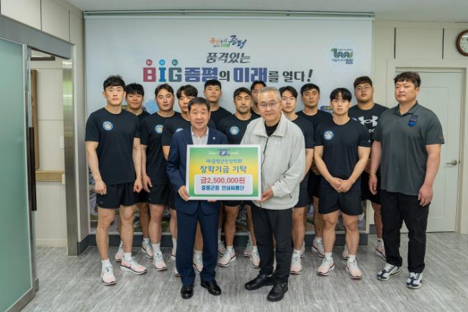 | ▲ 증평군청 인삼씨름단, (재)증평군민장학회 장학기금 250만원 기탁 |