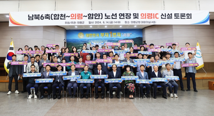 14일 오후 의령군청 4층 대회의실에서 열린 '남북6축(합천 부터 의령 부터 함안) 노선 연장 및 의령IC 신설 토론회'에서는 다수의 전문가가 참여해 주제 발표와 지정토론으로 고속도로 개설을 강조했다.