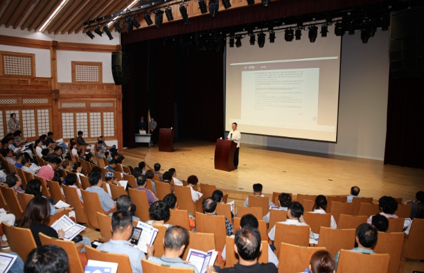 [뉴스서치] 지난 14일 칠곡군 향사아트센터에서 부동산 중개업무의 전문성 함양 및 불법거래행위 근절을 위한 공인중개사 대상 연수 직무교육을 칠곡군에서 진행했다.