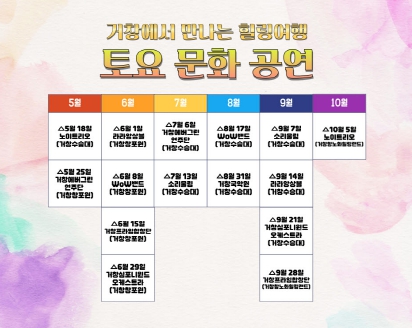이 외에도 7월 28일, ‘Opera Gala Concert’, 8월 25일 ‘Benjamin과 함께하는 프랑스 음악’, 9월 29일 ‘합천 교류 예술제’, 10월 27일 ‘우리 가락과 가요 한마당’ 등 다양한 공연이 예정돼 있다.
