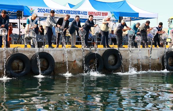 [뉴스서치] 울진군은 지난 1일 오후 5시 울진읍 연지리 대나리촌계 마을어장에서 어린 넙치를 방류하였다.