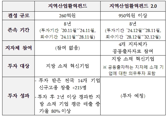 ▲ 기존 펀드와 지역산업활력펀드 2.0 비교 |