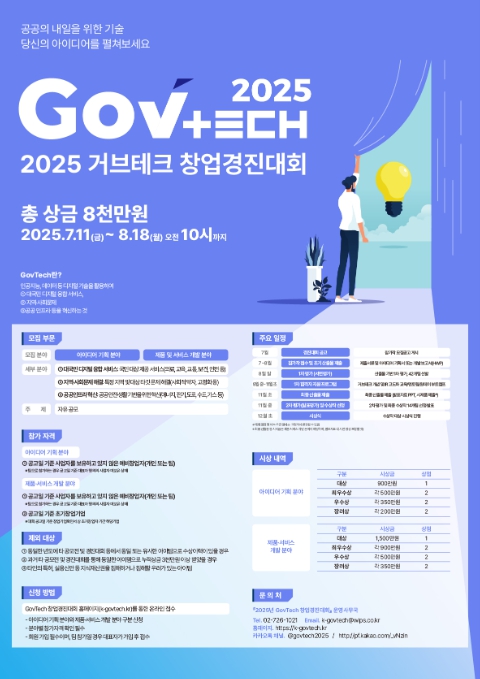 [뉴스서치] 과학기술정보통신부는 2025년 정부기술(GovTech) 창업경진대회 참가자를 7월 11일부터 8월 18일까지 모집한다고 밝혔다.
