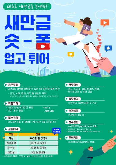 숏폼은 60초 미만의 짧은 영상으로 제작한 콘텐츠를 말하며, 이번 공모전은 6월 11일부터 7월 31일까지 신청을 받는다.