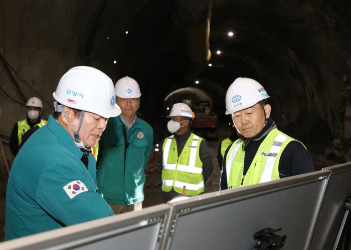 [뉴스서치] 최대호 안양시장은 지난 20일 월곶~판교 복선전철(이하 월판선)의 6공구 본선터널 공사 현장을 방문해 시공사 현대건설 관계자에게 “2028년 적기에 개통되고 안양시민들이 안전하게 이용할 수 있도록 시가 도울 일이 있다면 적극 노력하고 협조하겠다”고 말했다.