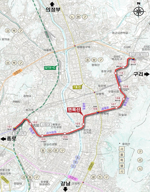 ▲ 제2차 서울시 도시철도망 구축계획 노선도(면목선(안)) |