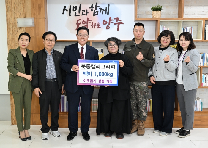강수현 양주시장은 “붓통캘리그라피 회원분들이 보여준 의미있고 뜻깊은 나눔에 깊이 감사드린다”며, ”기부해주신 쌀은 지역의 어려운 이웃을 돕는데 소중하게 쓰겠다”고 전했다.