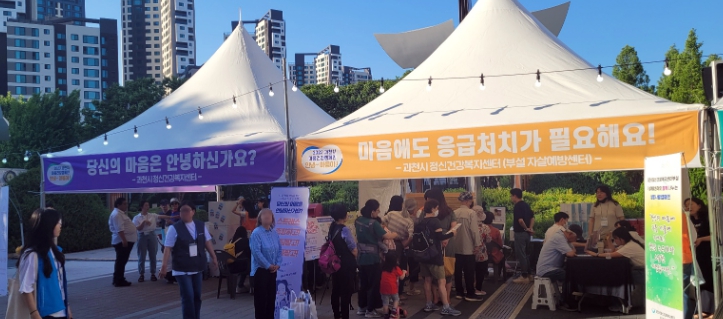 ▲ 과천시 정신건강복지센터가 지난 6월 16일 과천 중앙공원에서 정신건강 홍보 부스를 개최한 모습 |