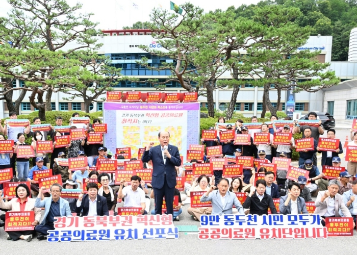 [뉴스서치] 동두천시 지역발전 범시민대책위원회는 14일, 동두천시청에서 경기 동북부권 혁신형 공공의료원 동두천 유치를 위한 시민 선포식을 개최했다.