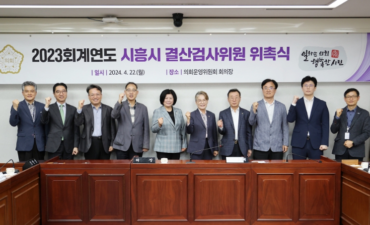 [뉴스서치] 경기 시흥시의회가 4월 22일 2023회계연도 결산검사를 앞두고 의회운영위원회 회의장에서 결산검사위원 위촉식을 진행했다.