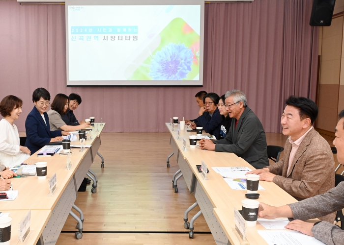 신곡2동주민센터 동오홀에서 열린 티타임에는 신곡권역 4개 동의 주민 대표인 주민자치회장, 통장협의회장들과 관련 부서장들이 참석했다.