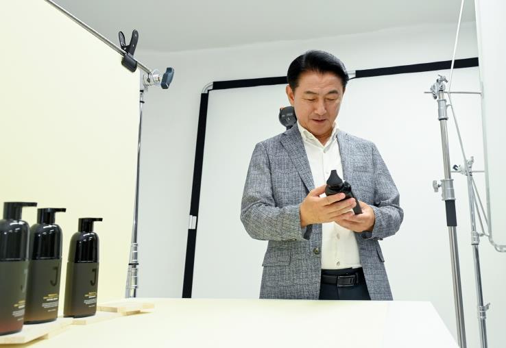 ▲ 김동근 시장이 ‘민생 속으로’ 프로그램의 일환으로 중소기업 ‘제이숲(Jsoop)’에 방문해 생산 제품을 살펴보고 있다. |