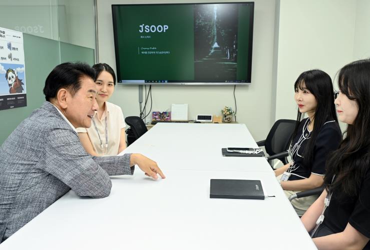 ‘기업하기 좋은 도시’를 그리는 김동근 시장은 7월 11일 가능동 소재 중소기업 ‘제이숲(Jsoop)’에 방문했다.