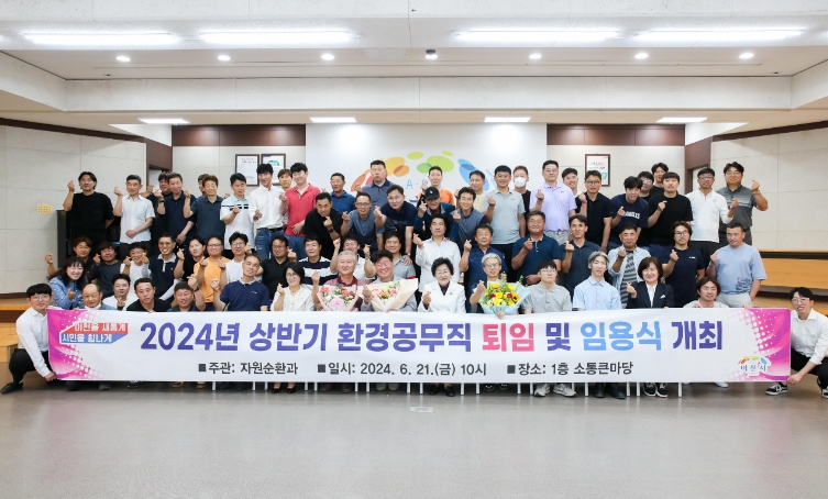 2024년 상반기 환경공무직 퇴직예정자 3인은 각각 26년, 14년, 11년의 시간 동안 깨끗하고 살기 좋은 이천을 만들기 위해 노력해왔으며 그 공로를 인정받아 표창장과 퇴직 기념품을 수여 받았다. 또한 앞으로 깨끗한 이천시를 만들기 위해 3인의 신규 환경공무직들이 새로이 임용됐다.