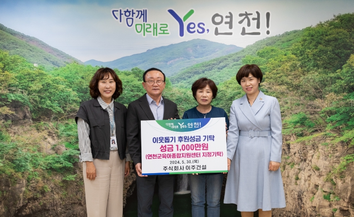 김덕현 연천군수는 “건설경기가 어려운 상황에도 지역사회를 위한 후원을 결심해 주신 대표님과 임직원분들께 감사의 말씀을 전하며, 기탁해 주신 성금은 아이들의 성장과 부모의 양육부담 경감을 위한 복지서비스에 소중히 사용하겠다”고 말했다.