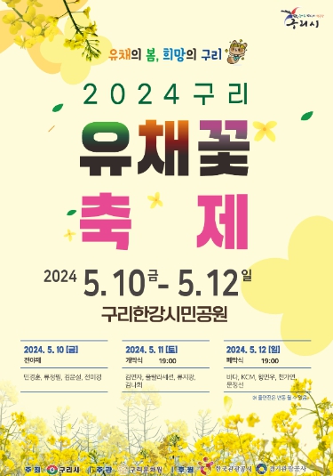 백경현 구리시장은 “구리시 유채꽃 축제는 수도권은 물론 전국 각지에서 찾는 축제로서, 구리시 브랜드 가치 향상에도 큰 기여를 하고 있다.”라며 “앞으로도 시민 문화 증진과 지역상권 활성화가 어우러진 다양한 축제가 되도록 적극 추진해 나가겠다.”라고 전했다.