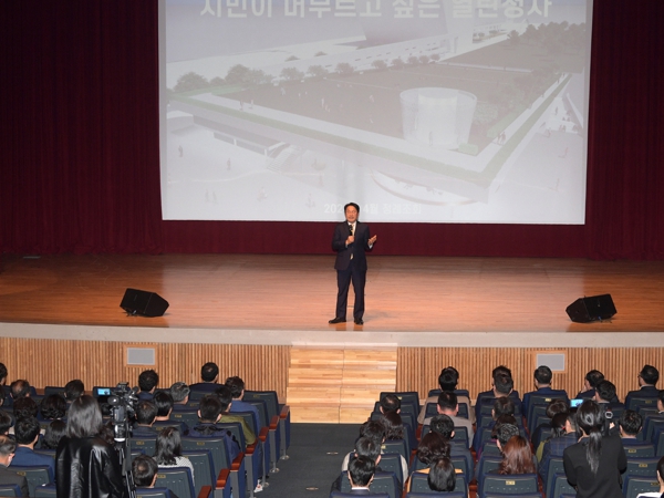 이날 정례조회에서 김광태 주무관(회계과)은 치평동 청사 개청 20주년을 맞아 ‘시민이 머물고 싶은 열린청사’를 주제로 발표했다.