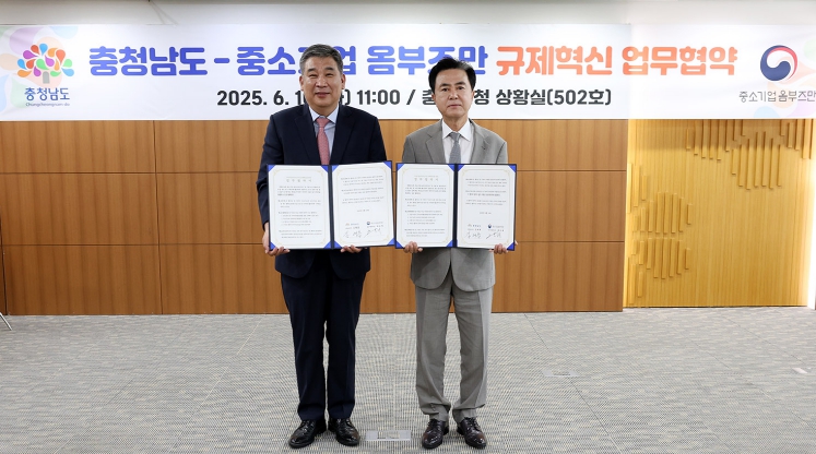 [뉴스서치] 충남도와 중소기업 옴부즈만이 10일 도청 상황실에서 김태흠 지사와 최승재 옴부즈만이 참석한 가운데, ‘지속 가능한 중소기업 규제 혁신을 위한 업무협약’을 체결했다.