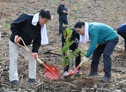 한편 이번 행사는 녹색 생태계 보존과 환경보호 의식을 일깨우기 위해 진행됐으며, 홍성군은 작년 산불로 피해입은 산림 1,337ha 중 1,122ha의 산림을 3년간 인공조림으로 복원할 계획이며, 올해 356ha 조림을 실시하고 있다.