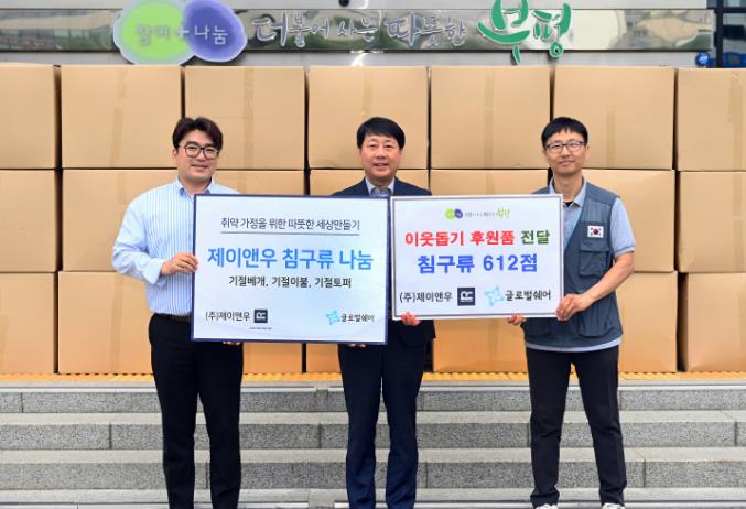 이번 나눔은 ㈜제이앤우(대표 정영훈)에서 기탁한 침구류를 (사)글로벌쉐어를 통해 부평구에 지원하는 방법으로 지역 내 어려운 이웃에게 전달된다.