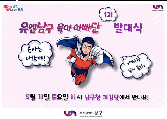 [뉴스서치] 부산 남구는 오는 11일 남구청 대강당에서‘유엔남구 육아아빠단’1기 발대식을 개최한다.