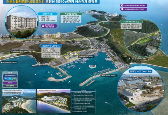 핵심시설인 홍원항 수산컴플렉스는 홍원항 위판장과 연계하여 수산물 가공유통 및 청년 창업창직 센터로 조성해 어촌 소득증대와 청년유입을 위한 다양한 소득사업이 진행될 예정이다.