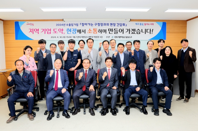 [뉴스서치] 대구 달서구는 4월 30일 오후 3시 대구경북지방중소벤처기업청 기업협력관에서 달서구 기업인들의 애로사항을 청취하고 지원방안을 논의하기 위해 '2024년 수출입기업 찾아가는 기업체 현장간담회'를 개최했다.