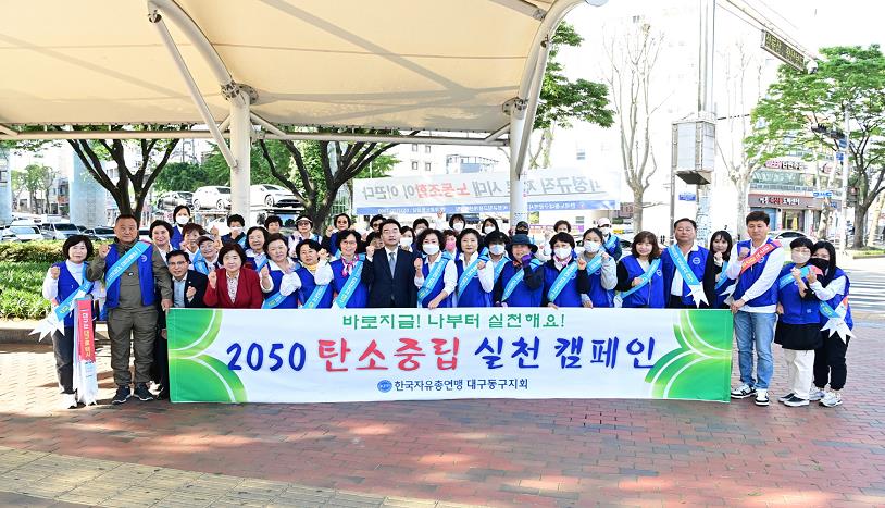 [뉴스서치] 한국자유총연맹 대구동구지회는 2일, 회원 40여 명과 함께 큰고개오거리에서 탄소중립 실천 캠페인을 펼쳤다.