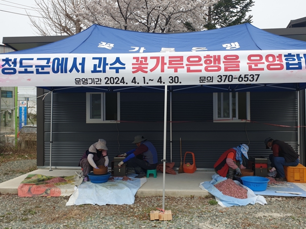 청도군 농업기술센터에 위치한 꽃가루은행은 과수농가를 대상으로 인공수분용 꽃가루 생산을 도와주는 곳으로, 농업인이 꽃이 피기 직전 부풀어 오른 꽃봉오리를 채취해 오면 꽃밥(약) 채취기, 정선기 등 구비된 전용 장비를 이용해 인공수분용 꽃가루를 채취할 수 있게 해준다.