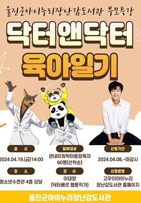 [뉴스서치] 울진군은 19일 오후 2시 울진군청소년수련관에서 관내 영유아 양육자를 대상으로 부모특강을 진행한다.