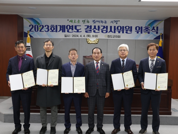 [뉴스서치] 청도군의회는 지난 제298회 임시회 기간 중 2023회계연도 결산검사위원을 선임하고, 4일 위촉장을 수여했다.