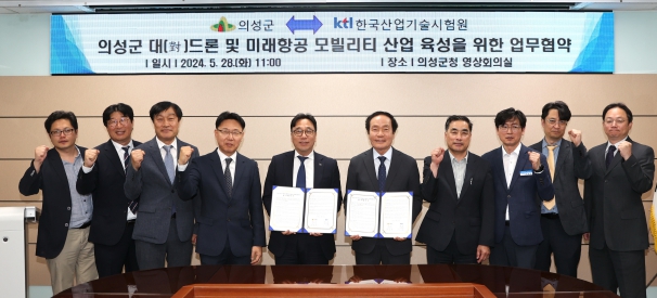 [뉴스서치] 의성군은 28일 한국산업기술시험원(KTL)과 의성군 대(對)드론 및 미래항공 모빌리티 산업 육성을 위한 업무협약을 체결했다.