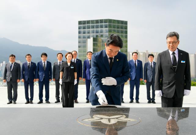 [뉴스서치] 경상남도의회 최학범(김해1, 국민의힘) 의장을 비롯한 후반기 의장단이 7월 1일 국립 3.15민주묘지 참배를 시작으로 공식 일정에 돌입했다.