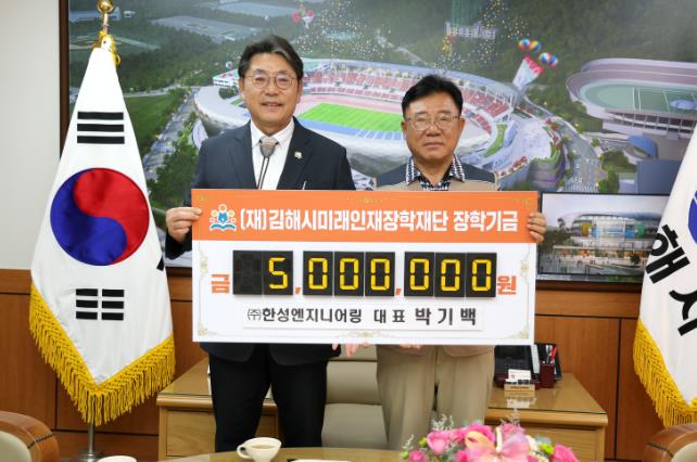 ▲ ㈜한성엔지니어링, 김해미래인재장학기금 5백만원 기탁 |