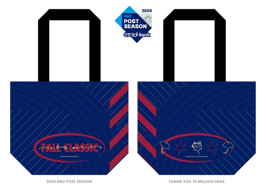 리유저블백은 2024년 포스트시즌을 기념하고 KBO 리그를 찾아준 1,000만 관중에게 감사의 의미를 담아 그라운드 패턴과 야구공 실밥 패턴으로 디자인됐으며, 은행잎으로 표현된 포스트시즌 엠블럼과 단풍잎 요소로 가을야구의 감성을 살렸다.