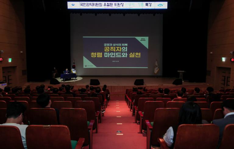 이날 오성환 당진시장을 비롯한 공직자 500여 명이 참석한 가운데, 유철환 위원장이‘공정과 상식의 회복, 공직자의 청렴 마인드와 실천’이라는 주제로 직접 강연했다.
