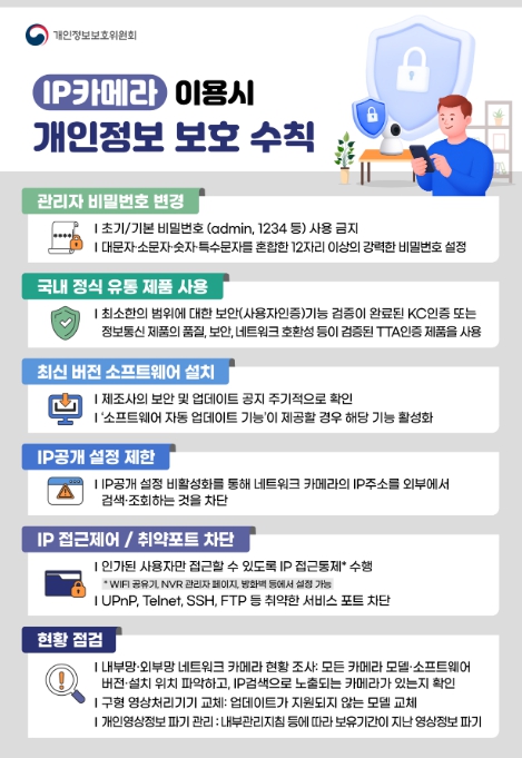 ▲ IP카메라 이용시 개인정보 보호 수칙 |