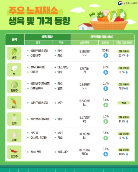 ▲ 주요 노지채소 생육 및 가격 동향 |