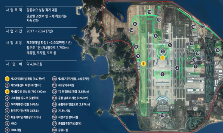 인천국제공항은 2001년 개항 이래로 단계적 개발계획에 따라 지속적인 확장 사업을 진행 중이며, 2017년부터 제4활주로 신설, 제2여객터미널 확장을 포함한 4단계 사업을 추진 중이다.