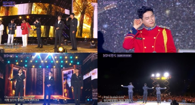 특히 이번 방송에서는 현재 군복무 중인 리더 김지훈이 소속된 국방부 중창단이 등장하며 팬들에게 감동을 선사했다. 리베란테와 국방부 중창단은 함께 ‘10월의 어느 멋진 날에’를 부르며 완벽한 호흡과 진한 감동을 선보였다.