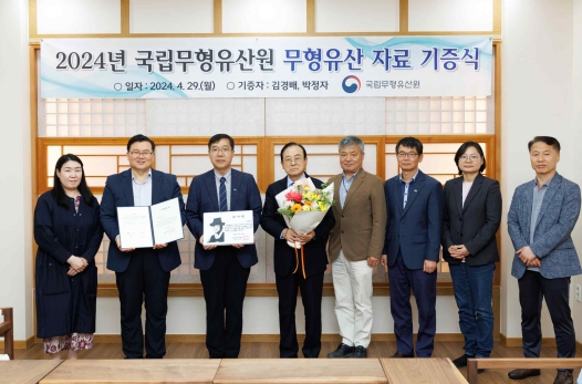 [뉴스서치] 문화재청 국립무형유산원(원장 윤순호)은 지난 4월 29일 국립무형유산원(전북 전주시)에서 국가무형유산 관련 자료 기증자들을 초청해 ‘무형유산 자료 기증식’을 진행했다. 작년 한 해 동안 기증된 자료는 고(故) 김월하 가곡 보유자의 유품을 비롯해 김경배 가곡 보유자와 박정자 단청장 명예보유자의 소장자료 등 총 87건(121점)이다.