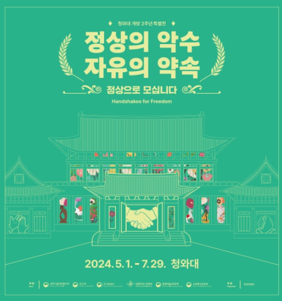 먼저 5월 1일부터 7월 29일까지 대한민국의 과거와 현재, 역사의 서사가 있는 청와대 본관에서 글로벌 중추국가로 발돋움하는 대한민국의 여정을 문화적으로 경험할 수 있는 전시 '정상의 악수, 자유의 약속 : 정상으로 모십니다'를 개최한다.