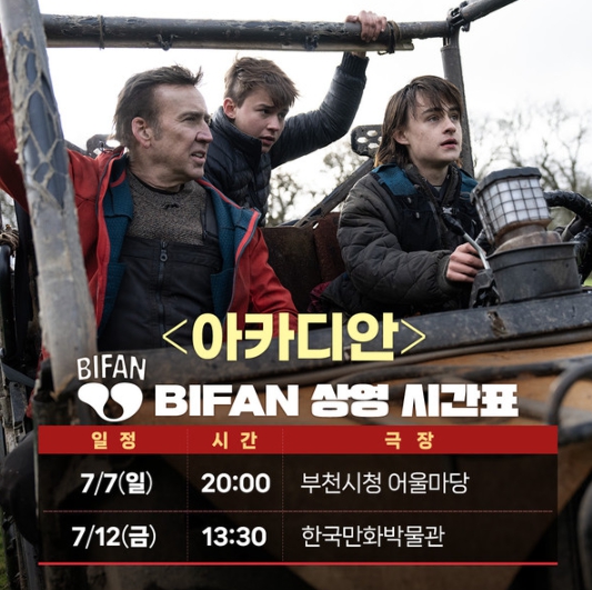 '아카디안'은 7월 7일 부천시청 어울마당과 7월 12일 한국만화박물관에서 공식 상영 예정이며, 6월 27일 목요일 오후 2시에 예매가 오픈된다.