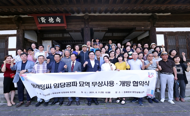 이번 협약은 지역 사회 발전을 위해 구와 동래정씨 임당공파의 상호 협력으로 이뤄낸 결과며 종친회에서 묘역 전체 부지를 무상 사용토록 제공함에 따라 개방의 첫발을 내디딜 수 있었다.