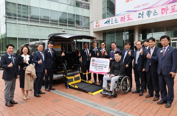 마포복지재단이 주관한 이번 기탁식은 국제라이온스협회 354-A지구에서 장애인의 이동권을 위한 5,000만 원 상당의 특수차량을 염리장애인주간보호센터에 후원하기 위해 개최됐다.